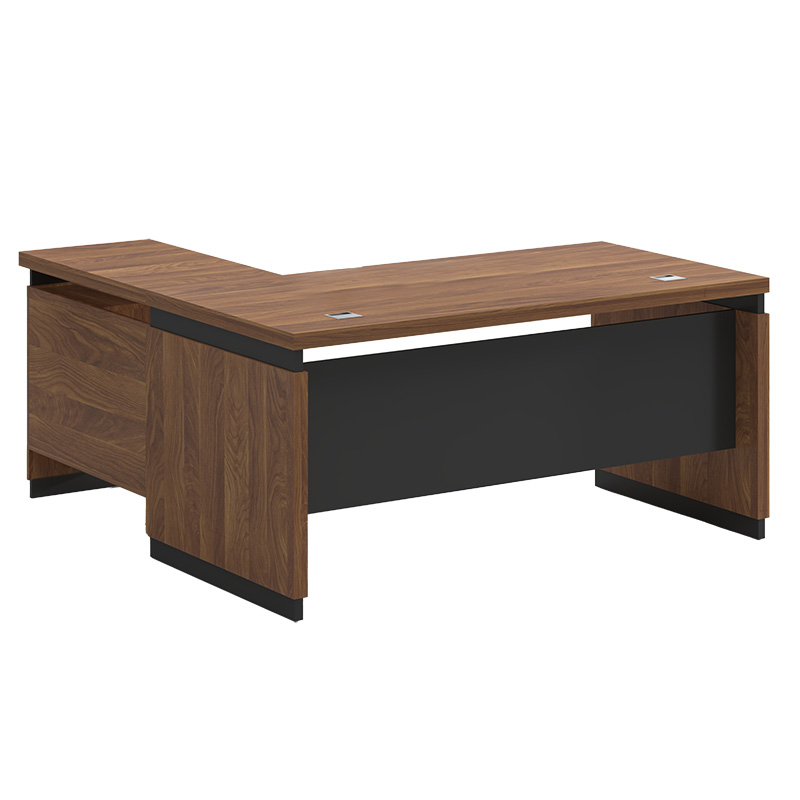 Γραφείο διεύθυνσης αναστρέψιμο (τοποθετείτε σε όποια πλευρά θέλετε), στον εντυπωσιακό χρωματισμό του καρυδί – ανθρακί. Κατασκευασμένο από υλικά υψηλών προδιαγραφών και σύμφωνα με τις εργονομικές απαιτήσεις του σήμερα.