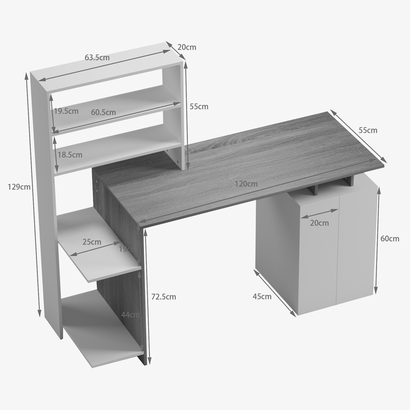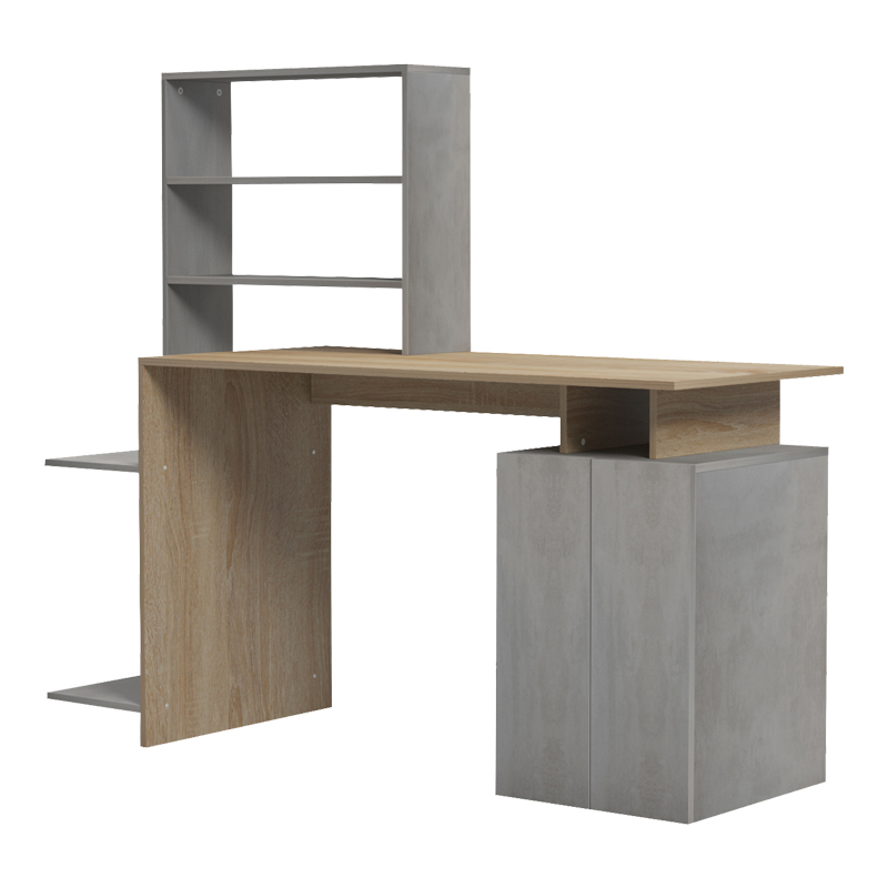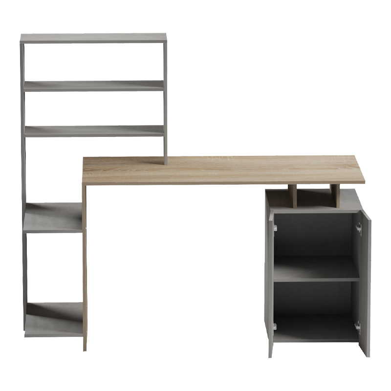 Γραφείο με βιβλιοθήκη και ντουλάπι Meza pakoworld sonoma-λευκό 146.3x55x128.8εκ