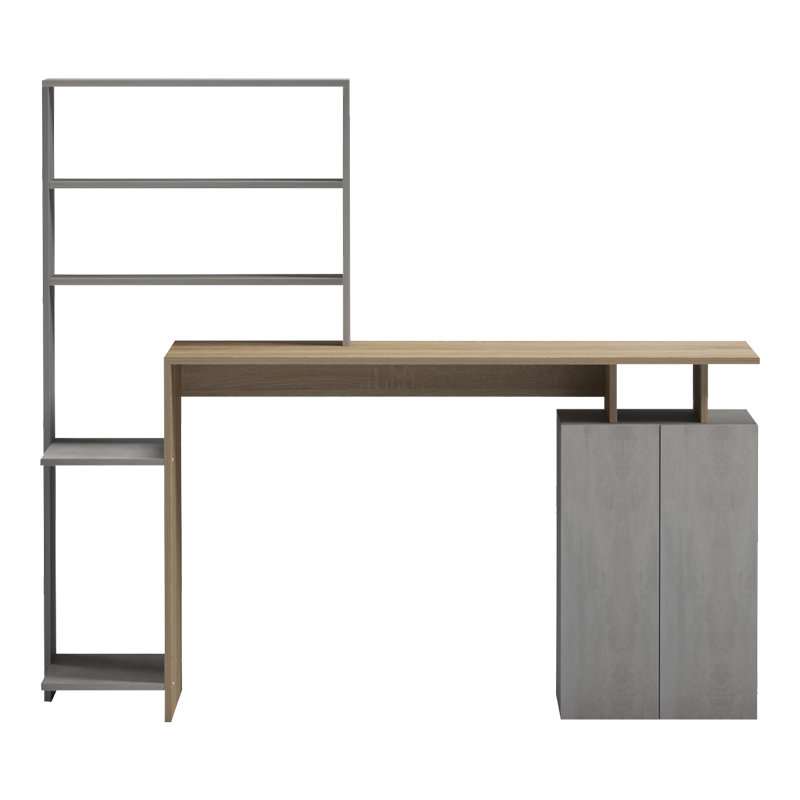 Το γραφείο εργασίας Meza συνδυάζει τη λειτουργικότητα και το σύγχρονο σχεδιασμό. Διαθέτει ένα ευρύχωρο γραφείο εργασίας, ιδανικό για υπολογιστή, μια ενσωματωμένη βιβλιοθήκη που προσφέρει άπλετο αποθηκευτικό χώρο για βιβλία, διακοσμητικά αντικείμενα ή φακέλους. Το μινιμαλιστικό του σχέδιο και τα ουδέτερα χρώματα το καθιστούν εύκολο να ταιριάξει σε οποιοδήποτε χώρο.