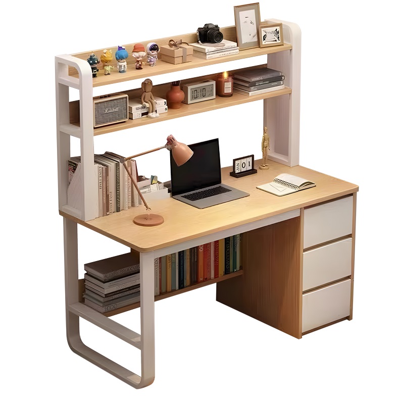 Γραφείο Soco pakoworld με ραφιέρα-MDF γκρι-λευκό 120x50x147εκ