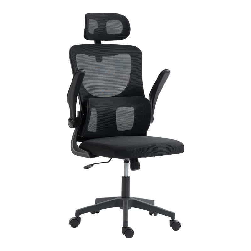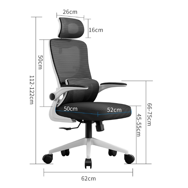 - Αποθήκευση & Ευελιξία: Τα μπράτσα τύπου flip-up επιτρέπουν την αναδίπλωση τους κατά 90°, δίνοντας τη δυνατότητα να σπρώξετε την καρέκλα εντελώς κάτω από το γραφείο, εξοικονομώντας έτσι χώρο όταν δεν χρησιμοποιείται.
