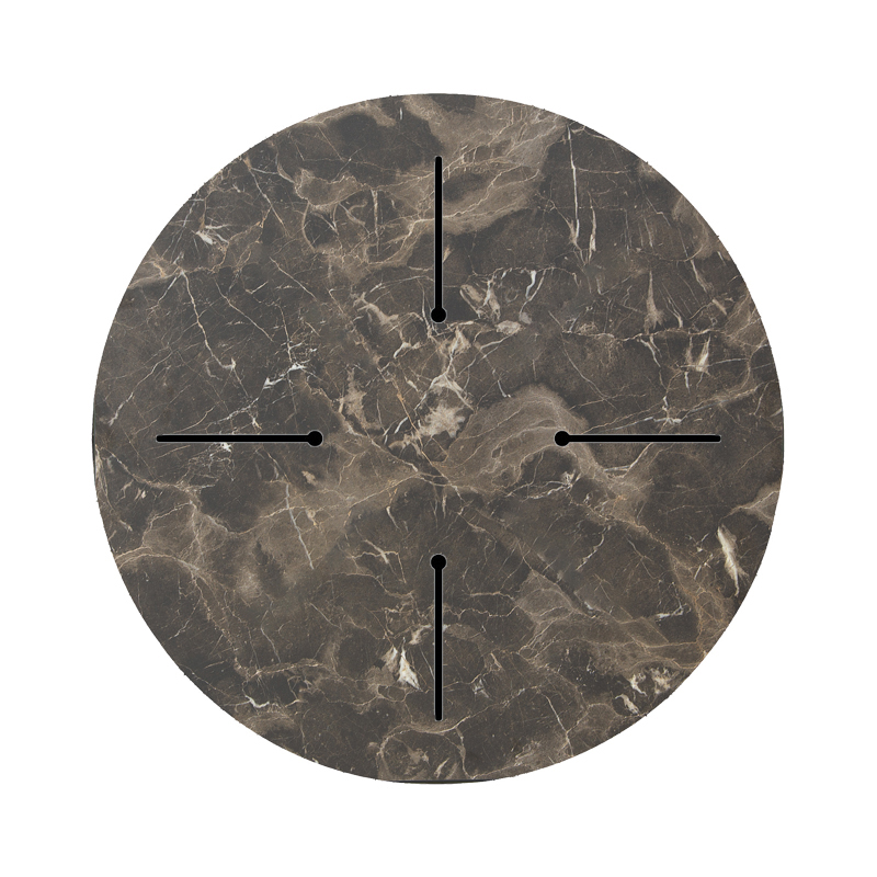 • Η επιφάνεια φέρει οδηγό στήριξης για την βάση του τραπεζιού. Δε τρυπιέται αλλά το κεφάλι της βίδας τοποθετείται μέσα στον εγχάρακτο οδηγό και σφίγγει στη μεταλλική βάση με παξιμάδι.
