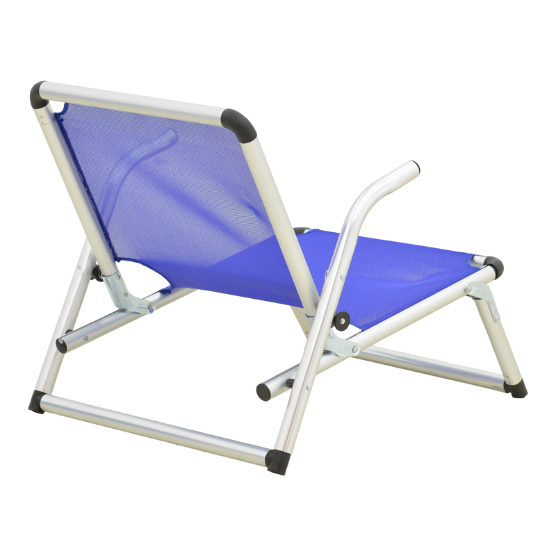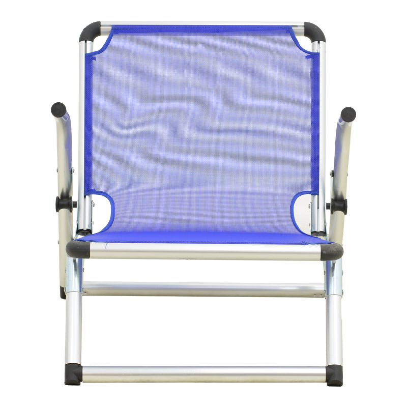 - Επένδυση υφάσματος textinene σε χρώμα μπλε. Το textilene είναι ύφασμα μεγάλης αντοχής στην ηλιακή ακτινοβολία UV και την υγρασία, ενώ παράλληλα αφήνει το δέρμα να “αναπνέει” δημιουργώντας έτσι άνεση στην έδραση.