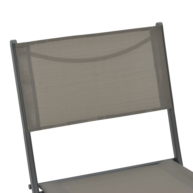 - Επένδυση έδρας και πλάτης από εξαιρετικής ποιότητας textilene. Το textilene είναι ύφασμα μεγάλης αντοχής στην ηλιακή ακτινοβολία και την υγρασία ενώ παράλληλα αφήνει το δέρμα να “αναπνέει” δημιουργώντας έτσι άνεση στο κάθισμα.