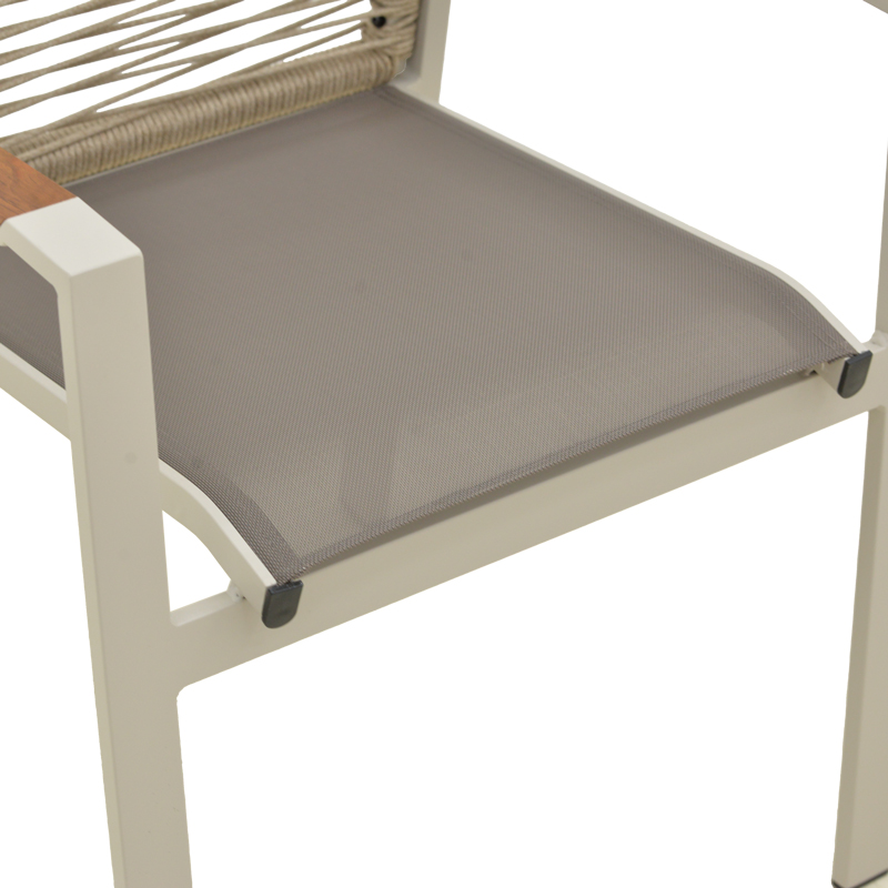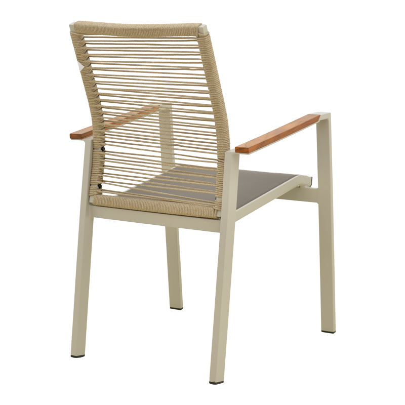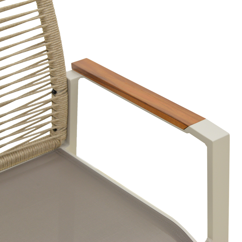 - Μοναδική Αίσθηση με Σχοινί & Teak: Η πλέξη από ανθεκτικό σχοινί (Ø5mm) προσφέρει μια ξεχωριστή, ανάλαφρη υφή. Τα μπράτσα από teak ξύλο χαρίζουν μια πολυτελή, φυσική πινελιά και την κάνουν να ξεχωρίζει