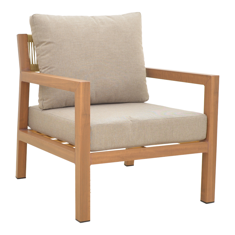Σαλόνι κήπου Andasio pakoworld σετ 4τεμ αλουμίνιο κ σχοινί σε φυσική- μαξιλάρια σε γκρι απόχρωση