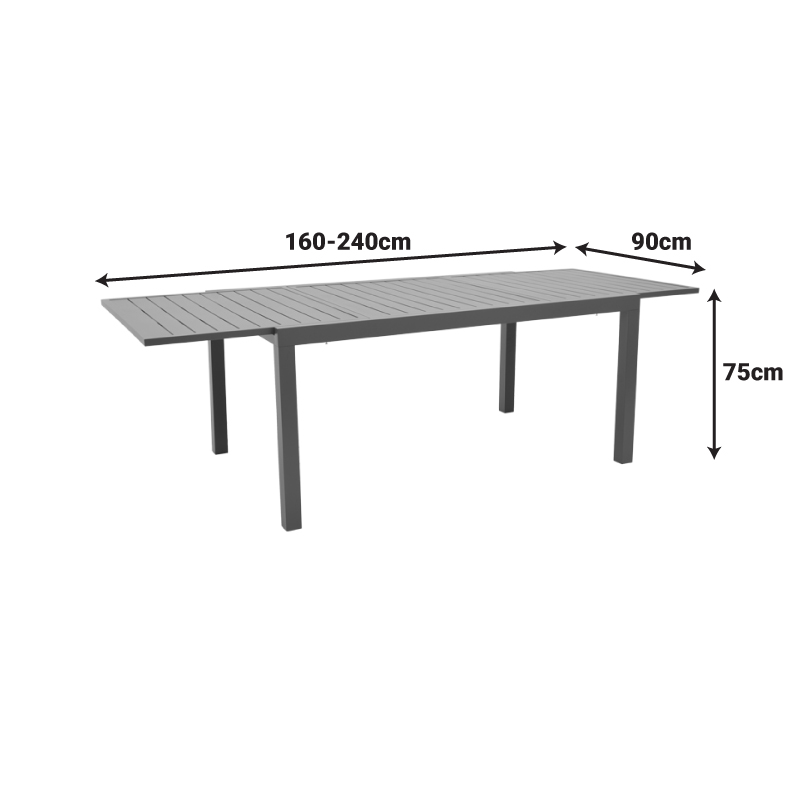 Τραπέζι επεκτεινόμενο Lafla pakoworld αλουμινίου ανθρακί 160-240x90x75εκ