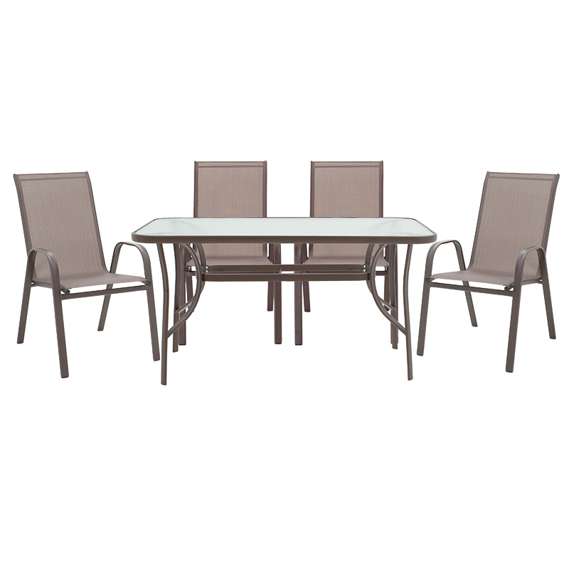 Τραπεζαρία Ensure-Calan pakoworld σετ 5τεμ μέταλλο-γυαλί καφέ 140x80x70εκ