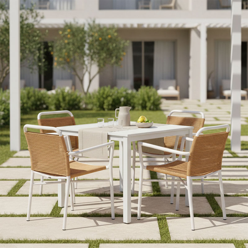 Τραπεζαρία Kliton – Clutch σετ 5τεμ pakoworld αλουμίνιο σε λευκή απόχρωση 80x80x74εκ