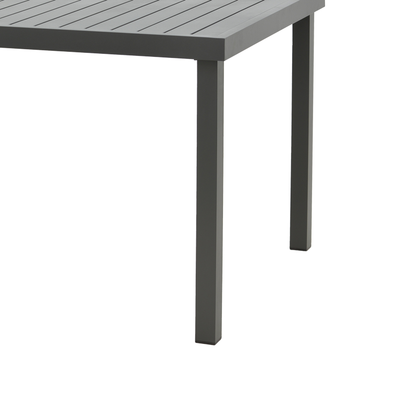 - Προσφέρεται σε χρώμα ανθρακί. Το ανθρακί χρώμα προσδίδει στον τραπέζι μια σύγχρονη και κομψή εμφάνιση που εναρμονίζεται εύκολα με διάφορα στυλ διακόσμησης εξωτερικών χώρων. Η απλότητα και η κομψότητα του μαύρου χρώματος τονίζει τον χώρο και προσθέτει μια νότα διαχρονικής κομψότητας.