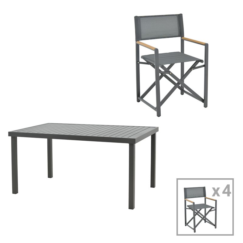 Τραπεζαρία Mabu-Kliton B σετ 7τεμ pakoworld αλουμινίου σε ανθρακί απόχρωση 150x80x74εκ