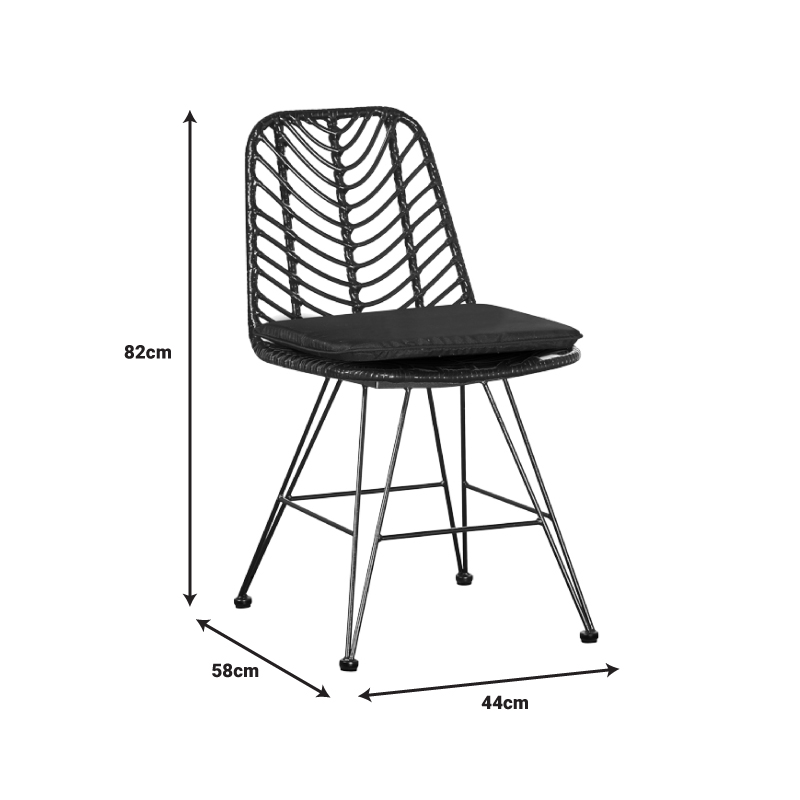- Κυρίως επιφάνεια καρέκλας από PE rattan. Το PE rattan είναι ένα είδος οικολογικού συνθετικού rattan, ανακυκλώσιμο και με μεγαλύτερη ανθεκτικότητα σε σχέση με τα άλλα είδη.
