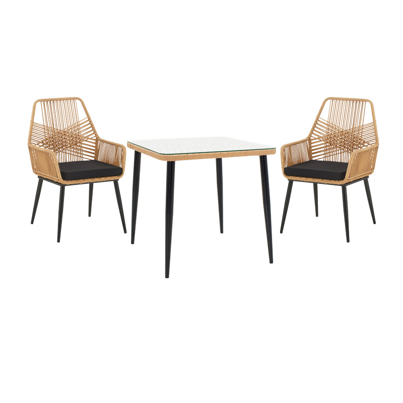 Τραπεζαρία Naoki-Tanish σετ 3 τεμ pakoworld μέταλλο μαύρο-pe φυσικό-γυαλί 80x80x78εκ