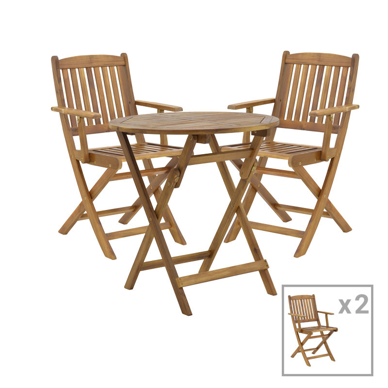 Τραπεζαρία Recofly-Carpuva pakoworld σετ 3τεμ πτυσσόμενο φυσικό μασίφ ξύλο ακακίας Φ70×74εκ