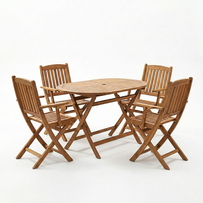 Τραπεζαρία Recofly-Falov pakoworld σετ 5τεμ φυσικό μασίφ ξύλο ακακίας 130x80x72εκ