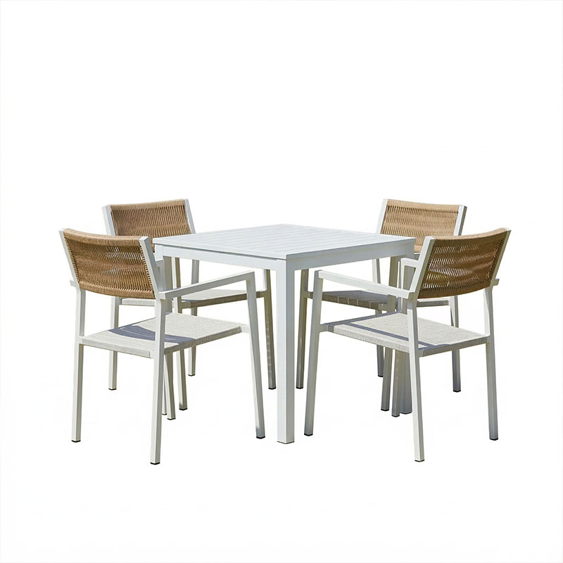 Τραπεζαρία Savor-Kliton σετ 5τεμ pakoworld λευκό αλουμίνιο και rattan σε φυσικό χρώμα 80x80x74εκ