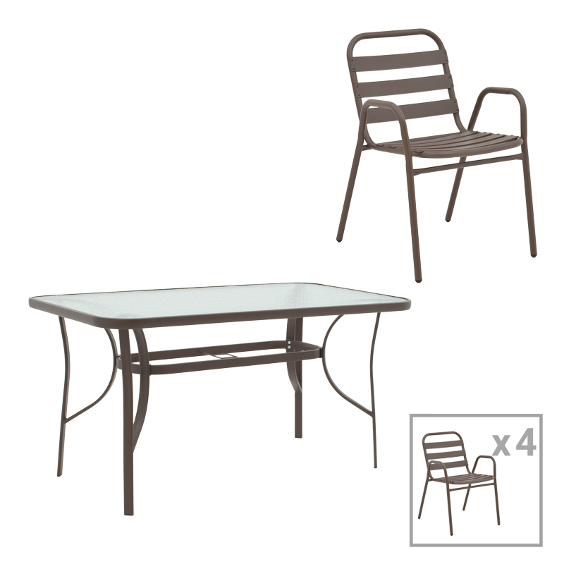 Τραπεζαρία Sussie-Ensure pakoworld 5τεμ μέταλλο-γυαλί σε καφέ απόχρωση 120x70x70εκ