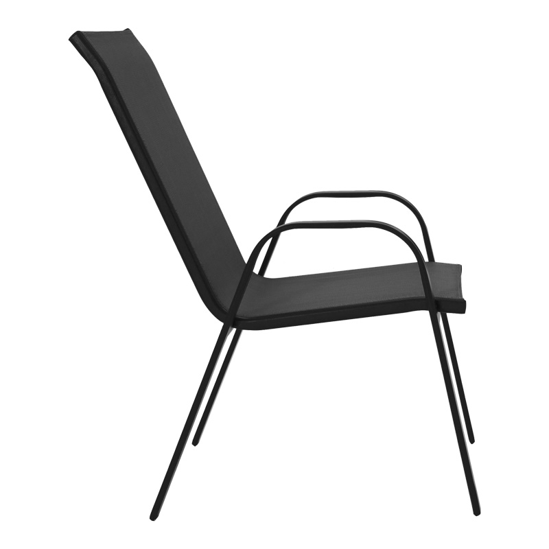- Σταθερός σκελετός από μέταλλο με αντοχή στην καταπόνηση και στη φθορά. Κυρίως σώμα καρέκλας από εξαιρετικής ποιότητας textilene. Το textilene είναι ύφασμα μεγάλης αντοχής στην ηλιακή ακτινοβολία και την υγρασία ενώ παράλληλα αφήνει το δέρμα να “αναπνέει” δημιουργώντας έτσι άνεση στο κάθισμα.