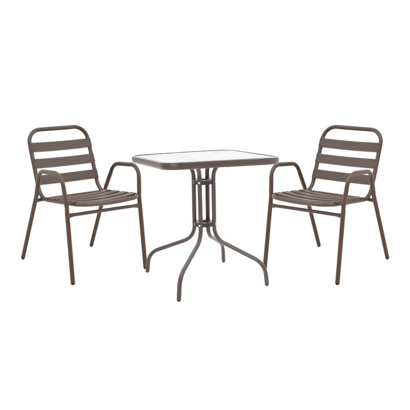 Τραπεζαρία Watson-Sussie pakoworld σετ 3τεμ μέταλλο καφέ-γυαλί 60x60x70εκ