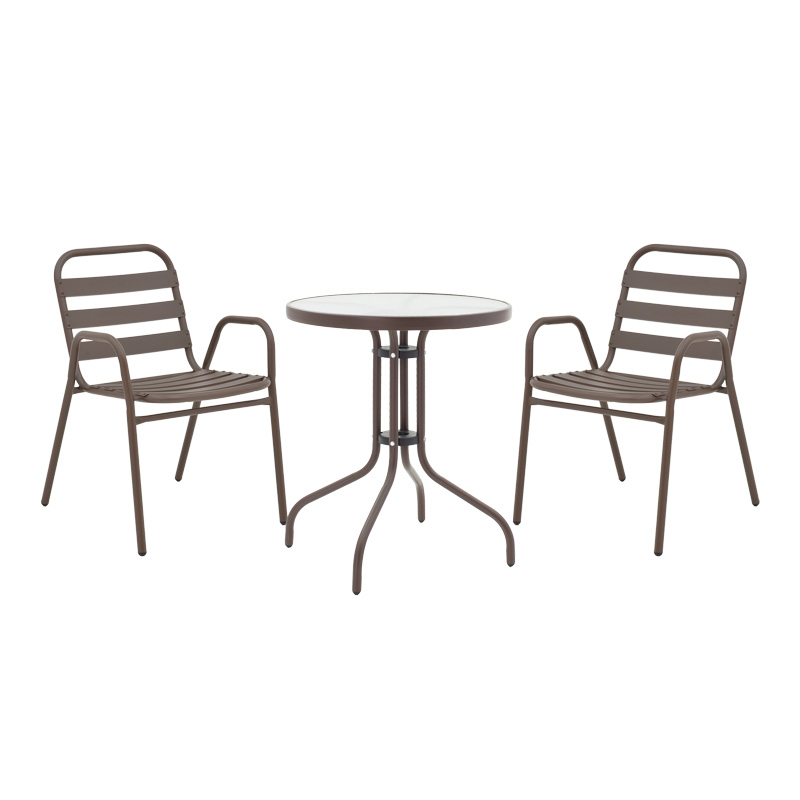 Τραπεζαρία Watson-Sussie pakoworld σετ 3τεμ μέταλλο καφέ-γυαλί 60x60x70εκ