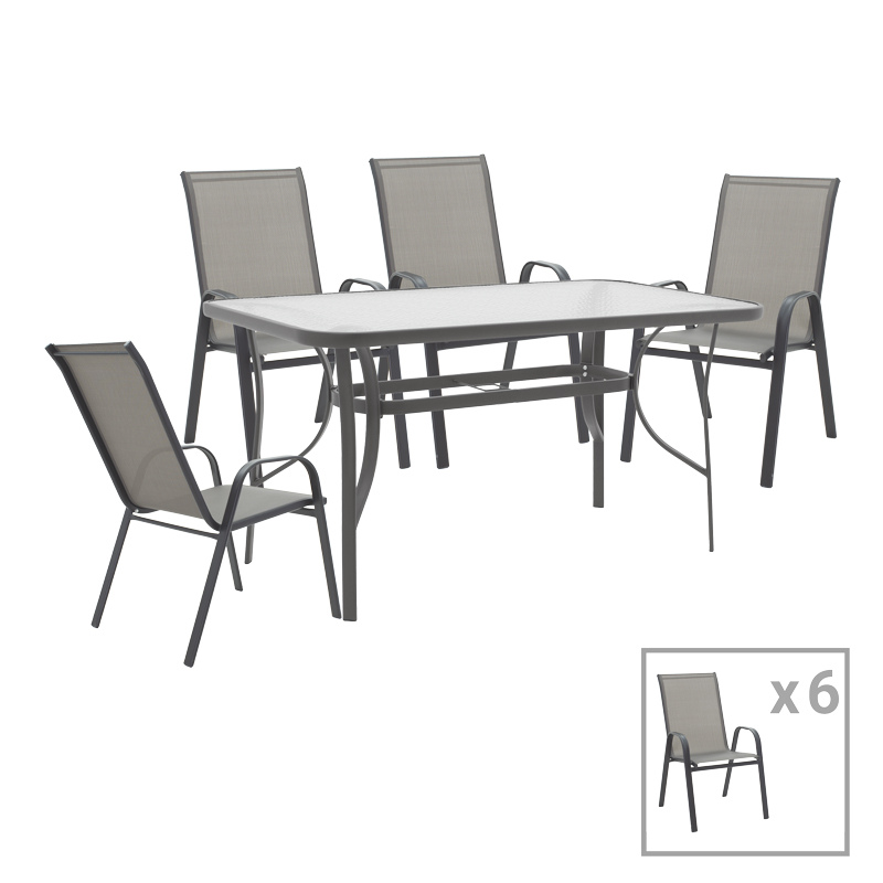 Tραπεζαρία Calan-Ensure pakoworld σετ 7τεμ σκούρο ανθρακί μέταλλο και textilene ανθρακί 140x80x70εκ