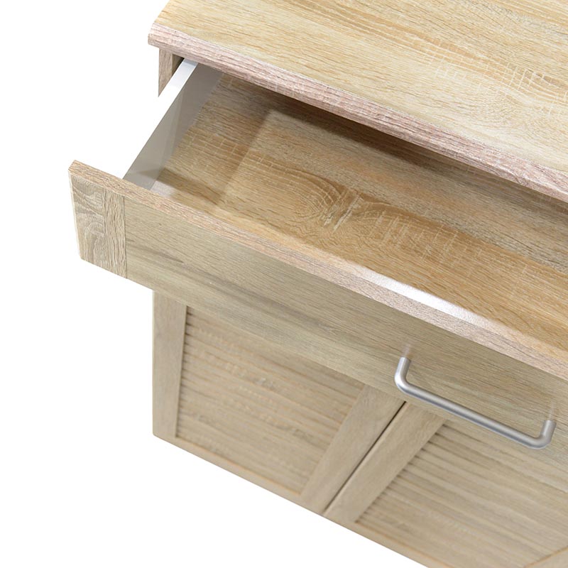 • Το διπλό κλειστό ντουλάπι περιλαμβάνει 4 ράφια και το μονό 5,  ενώ το συρόμενο συρτάρι στην κορυφή μπορεί να φανεί πολύ εύχρηστο στο χώρο υποδοχής του σπιτιού.
