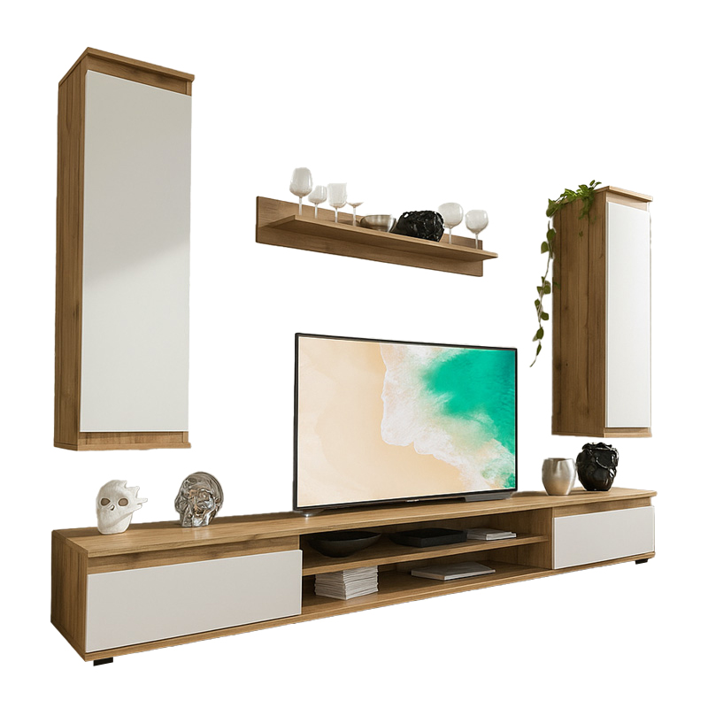 Σύνθετο σαλονιού Sandro pakoworld καρυδί-λευκό 175x37x160εκ