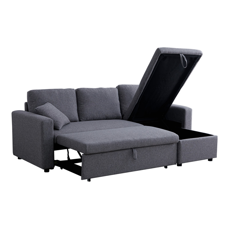 - Φέρει εύχρηστο μηχανισμό που με μία μόνο κίνηση ανασηκώνεται, μετατρέποντας τον καναπέ σε κρεβάτι και το αντίστροφο.
