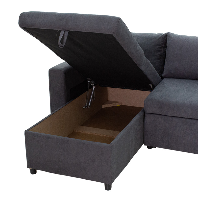 Γωνιακός καναπές-κρεβάτι αναστρέψιμος Lilian pakoworld ανθρακί 225x148x81εκ