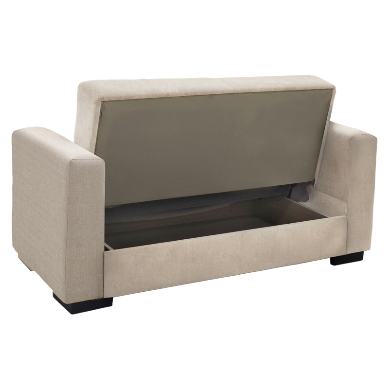 2. Καναπές-κρεβάτι με αποθηκευτικό χώρο διθέσιος Vox pakoworld κρεμ ύφασμα 154x82x83εκ