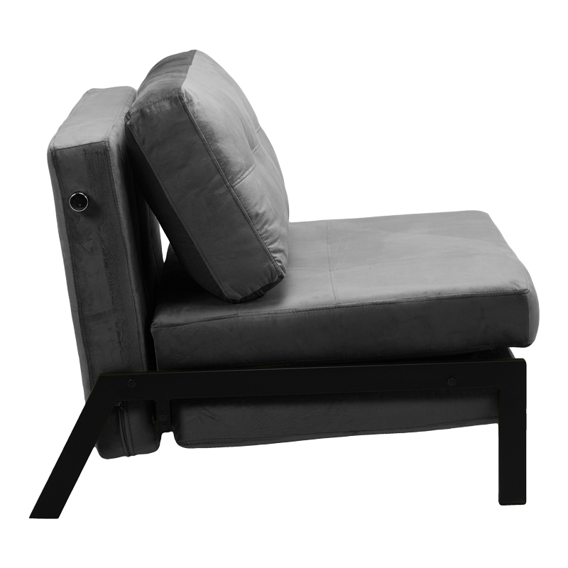 Πολυθρόνα-κρεβάτι Fancy pakoworld βελούδο σε ανθρακί απόχρωση και πόδι μαύρο μέταλλο 95x98x70εκ
