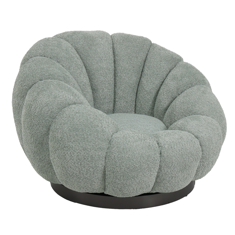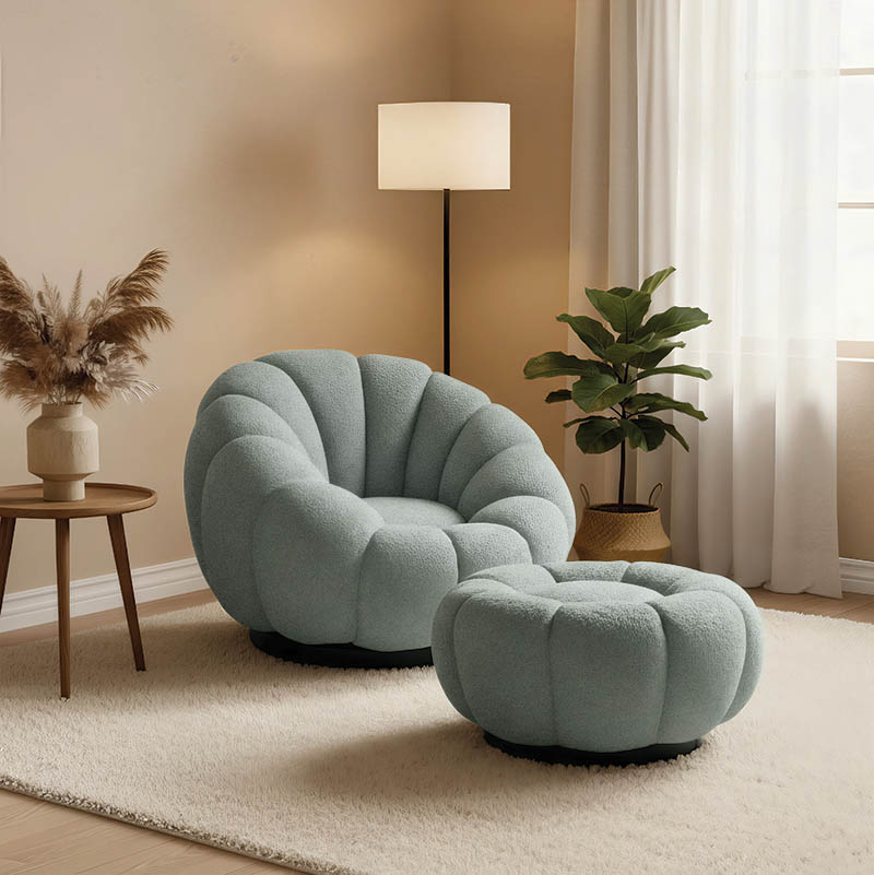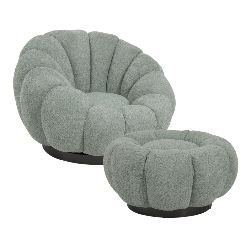 Πολυθρόνα περιστρεφόμενη με σκαμπό Nester pakoworld μπουκλέ ύφασμα σε γκρι απόχρωση 98x97x69εκ