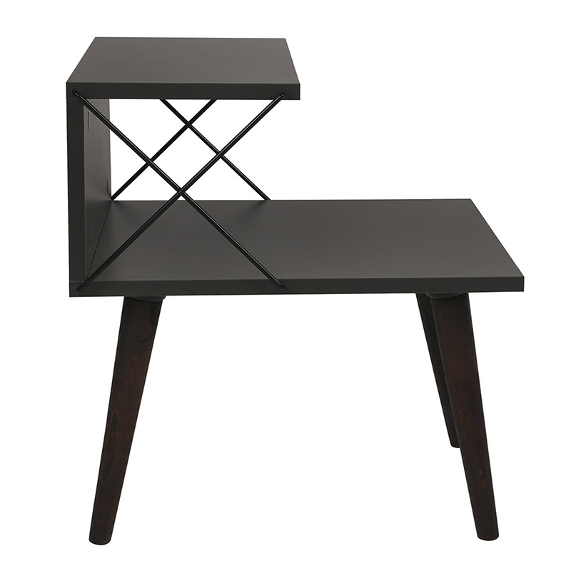Βοηθητικό τραπέζι-κομοδίνο Gather pakoworld ανθρακί-καρυδί 50x40x55εκ