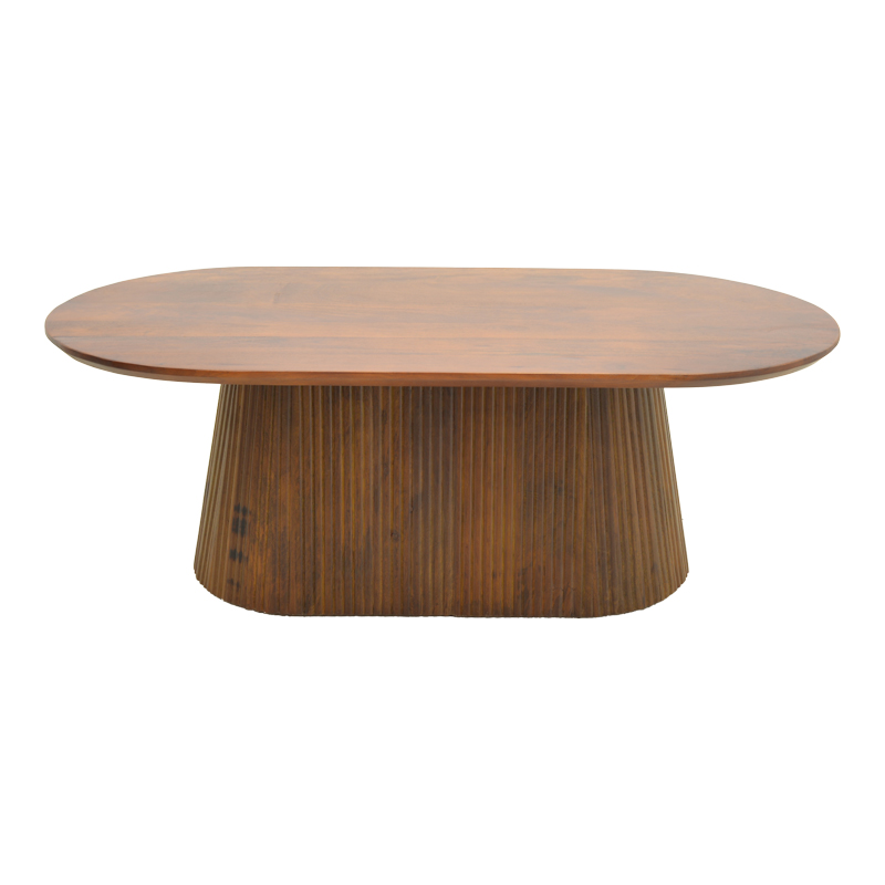 Τραπεζάκι σαλονιού Aithra από μασίφ ξύλο mango με μοντέρνο σχεδιασμό και φυσική αισθητική. Η οβάλ επιφάνειά του αναδεικνύει τη φυσική υφή και τα νερά του ξύλου, προσδίδοντας ζεστασιά και κομψότητα στον χώρο.