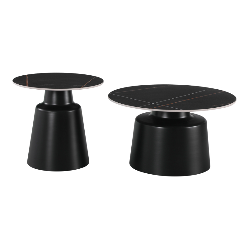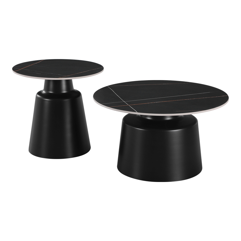 Τραπέζια σαλονιού Dualis pakoworld σετ 2 τεμ μέταλλο-sintered stone σε μαύρο μαρμάρου