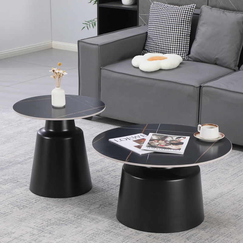 Τραπέζια σαλονιού Dualis pakoworld σετ 2 τεμ μαυρο μέταλλο-sintered stone σε γκρι μαρμάρου