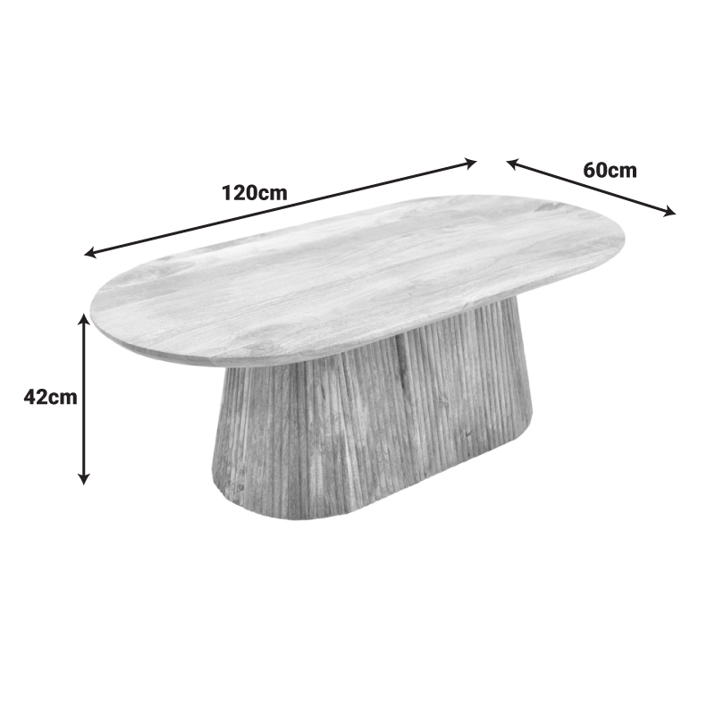 Τραπεζάκι σαλονιού Aithra από μασίφ ξύλο mango με μοντέρνο σχεδιασμό και φυσική αισθητική. Η οβάλ επιφάνειά του αναδεικνύει τη φυσική υφή και τα νερά του ξύλου, προσδίδοντας ζεστασιά και κομψότητα στον χώρο.
