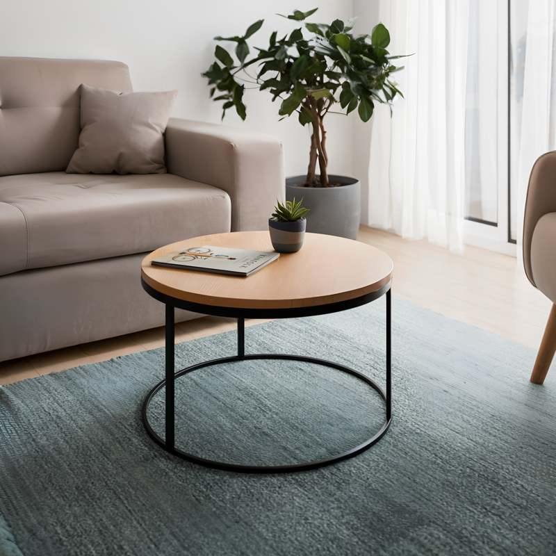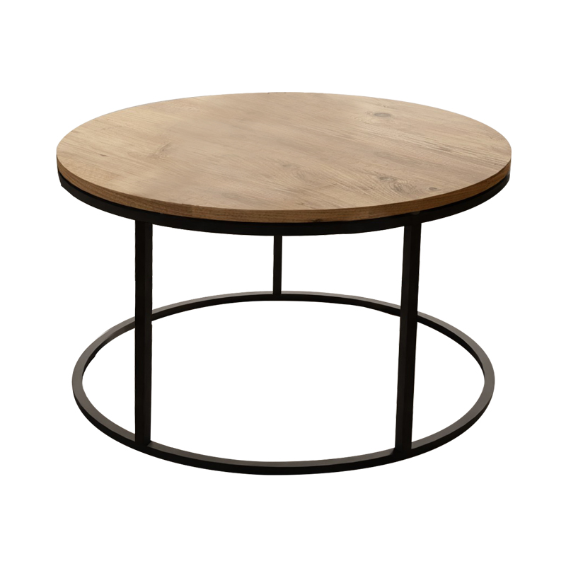 Τραπέζι σαλονιού Drion pakoworld oak μελαμίνης-μαύρο μέταλλο Φ60×40εκ