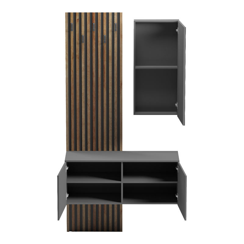 Έπιπλο εισόδου με καθρέπτη Arika pakoworld σε oak-ανθρακί απόχρωση 100×37.1×199.5εκ