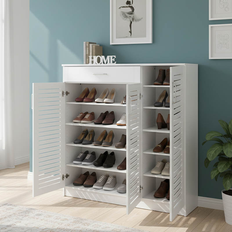 Παπουτσοθήκη-ντουλάπι SANTE με 3 πόρτες & 1 συρτάρι χωρητικότητας 30 ζεύγη λευκό 120x37x123 εκ