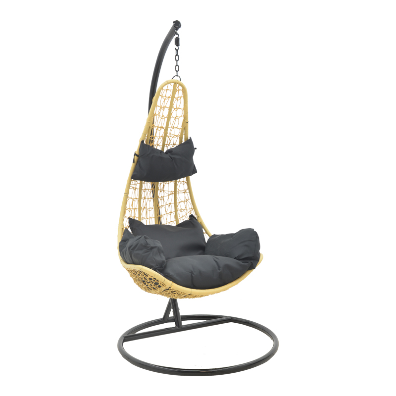 Κούνια κήπου Soleil pakoworld κρεμαστή pp σε φυσικό χρώμα και μαύρο μέταλλο 103x83x200εκ