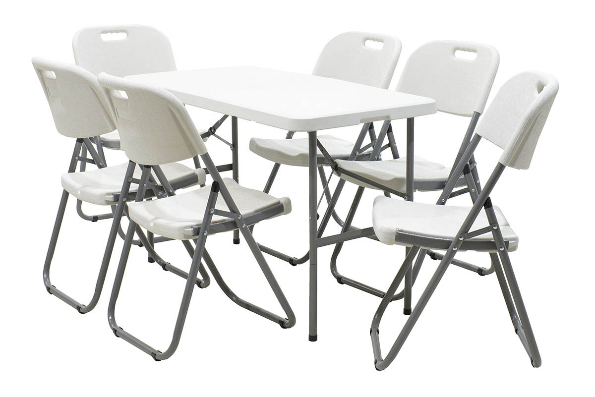 Τραπέζι πτυσσόμενο σε μορφή βαλίτσας Rodeo ορθογώνιο με μεταλλική βάση χρώμα λευκό / γκρι 122x60x74εκ