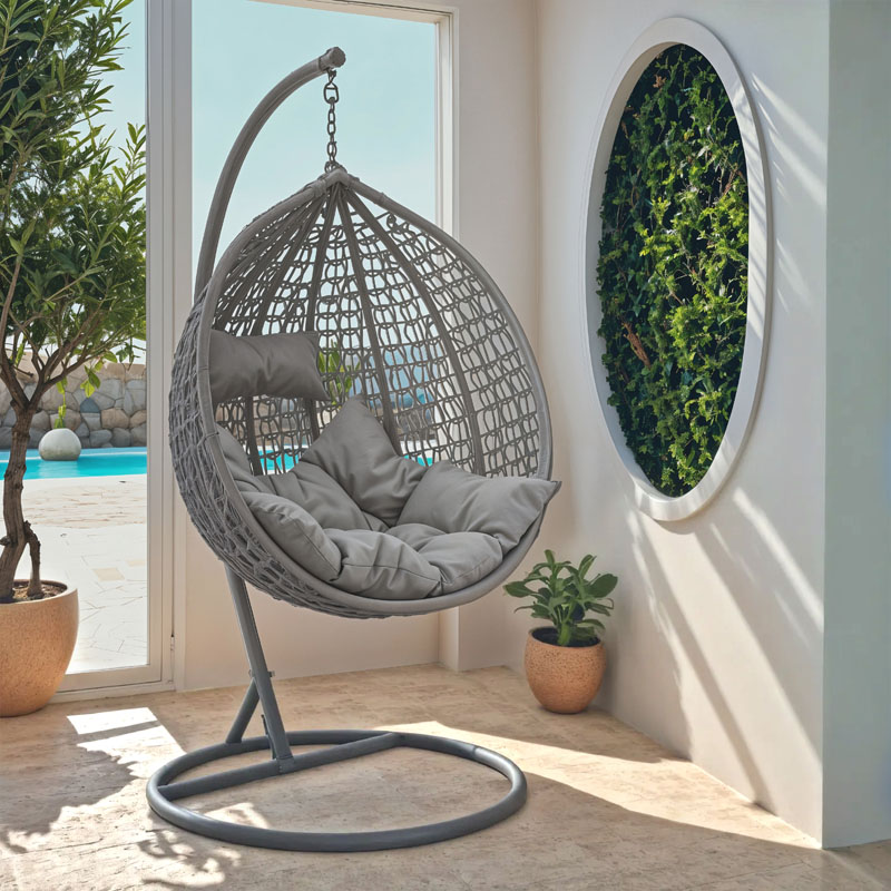 Κούνια Zafer pakoworld κρεμαστή μέταλλο-pp-μαξιλάρι γκρι 106x103x200εκ