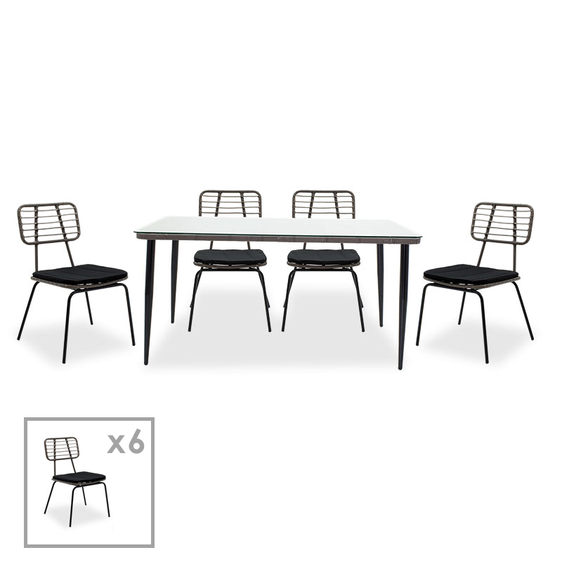 Τραπεζαρία Naoki σετ 7τεμ pakoworld μέταλλο μαύρο pe γκρι.