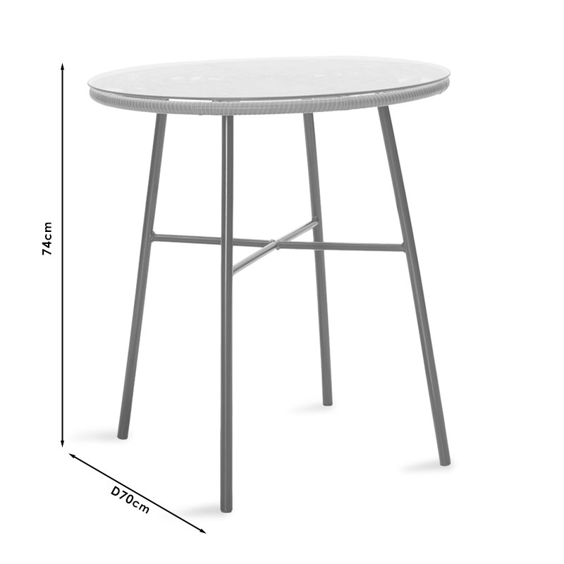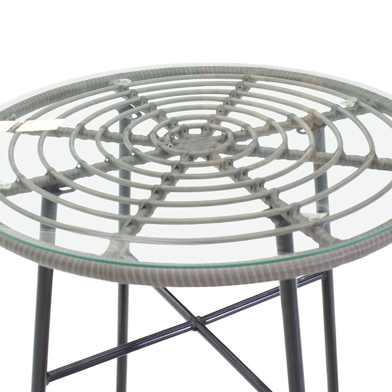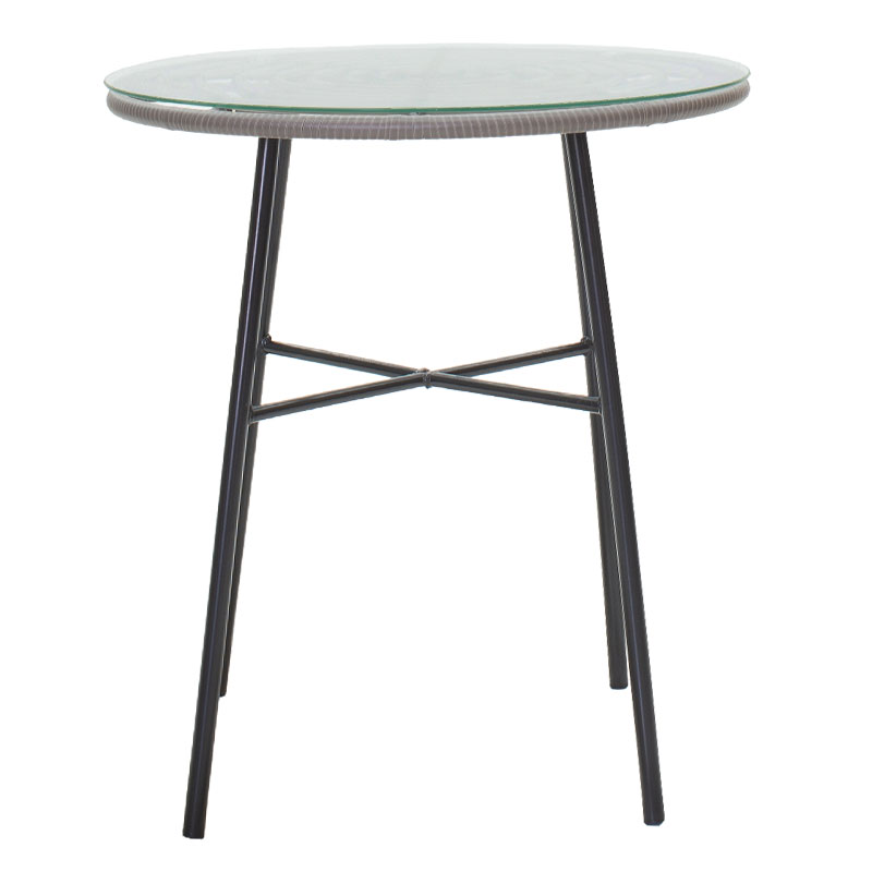 Τραπέζι Gaus pakoworld μέταλλο μαύρο-pe γκρι-γυαλί Φ70×74εκ
