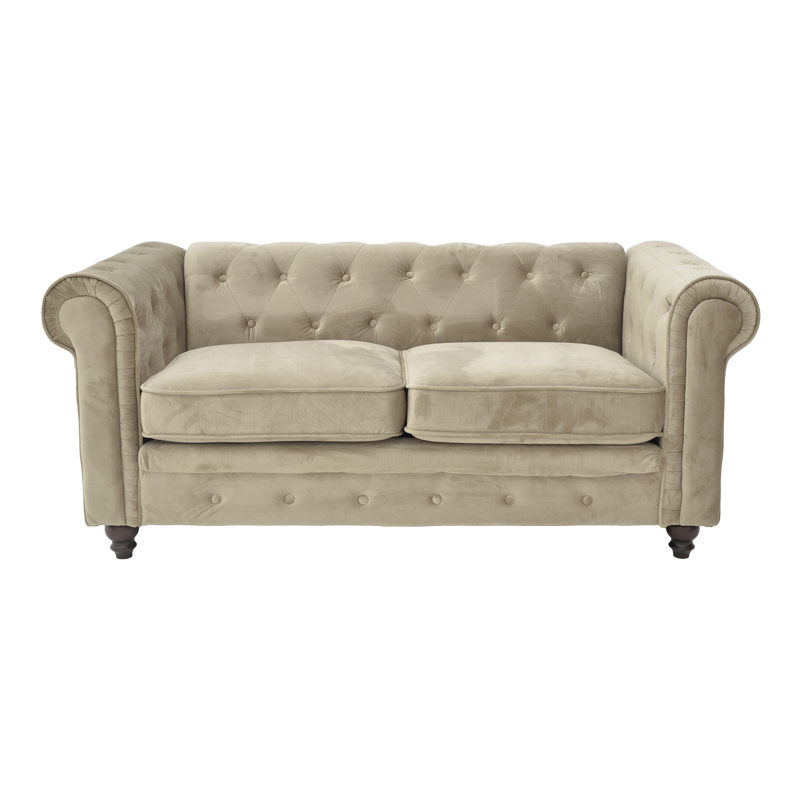 Kαναπές διθέσιος τύπου Chesterfield pakoworld βελούδο μπεζ 160x84x67εκ