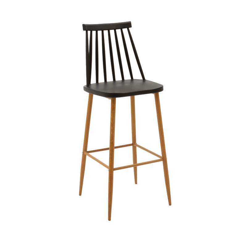 Σκαμπό μπαρ Aurora pakoworld PP μαύρο-φυσικό πόδι 42x49x109εκ