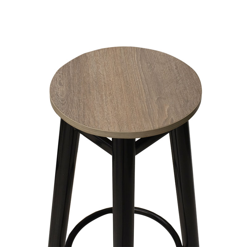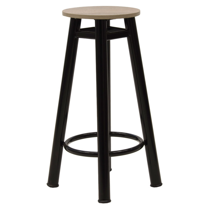 Σκαμπό μπαρ Onyx pakoworld ξύλο δρυς-μέταλλο μαύρο gloss Φ33×77εκ