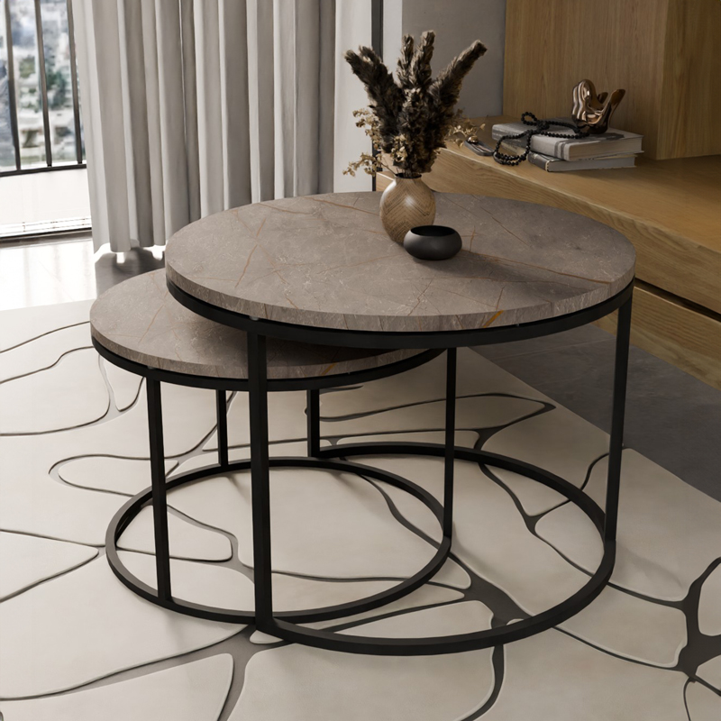 Τραπέζια σαλονιού Solme pakoworld σετ 2τεμ γκρι μαρμάρου μελαμίνης-μαύρο μέταλλο