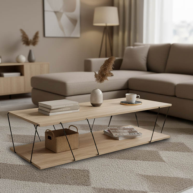 Tραπέζι σαλονιού Tars pakoworld οακ-μαύρο 120x48x30εκ